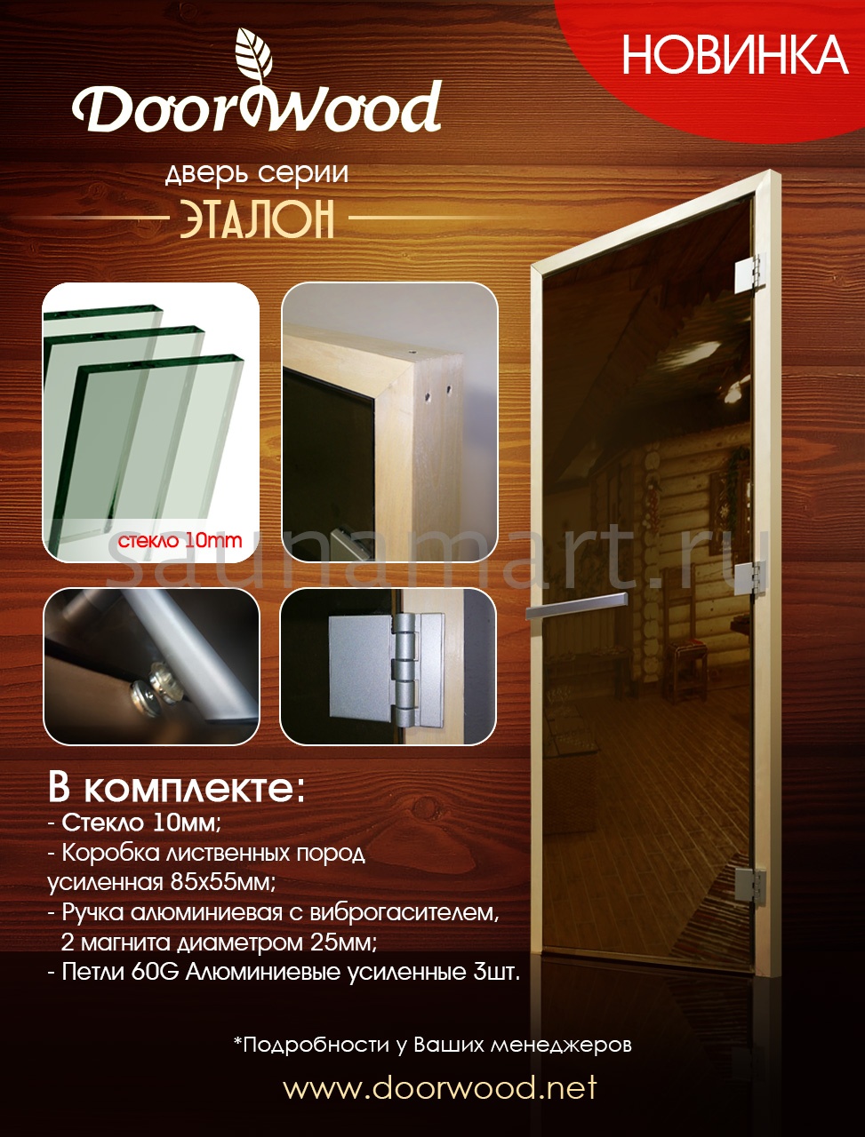 Профессиональная дверь для саун с усиленной конструкцией. Отличается увеличенной толщиной стекла 10 мм и усиленной коробкой из ольхи. Оснащена инновационной системой закрывания с двумя мощными магнитами и виброгасящей ручкой.