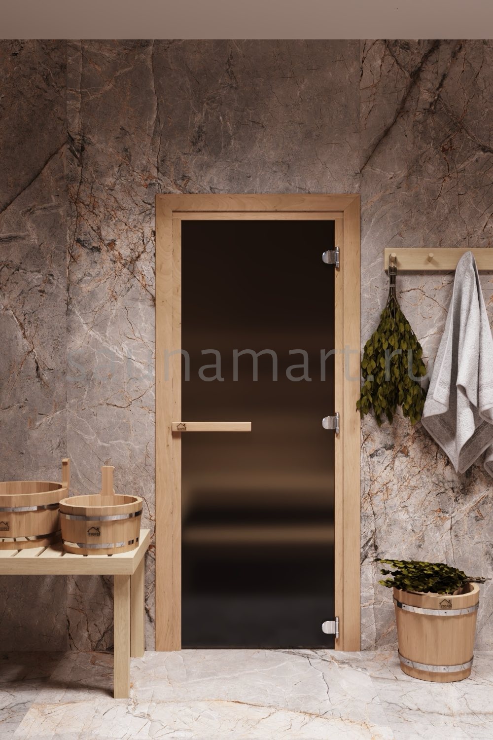 Дверь для сауны 2000х700 Бронза матовая 8 мм 3 петли ольха