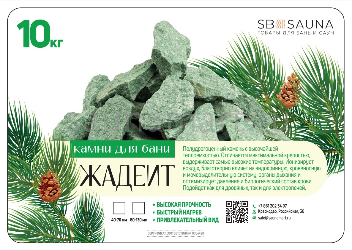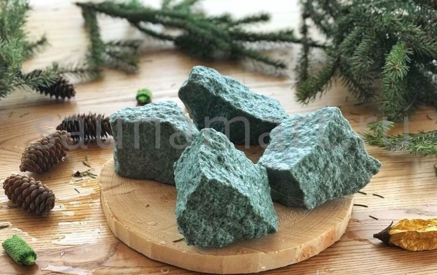 Камень жадеит колотый фракции 80-130 мм — натуральный минерал для банных печей. Упаковка: мешок 10 кг. Происхождение: Хакасия, Россия.