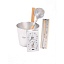 Комплектация - Ушат 5 л (ручка бамбук) -Черпак 33 см (ручка бамбук) -Термогигрометр - Песочные часы (белый песок)