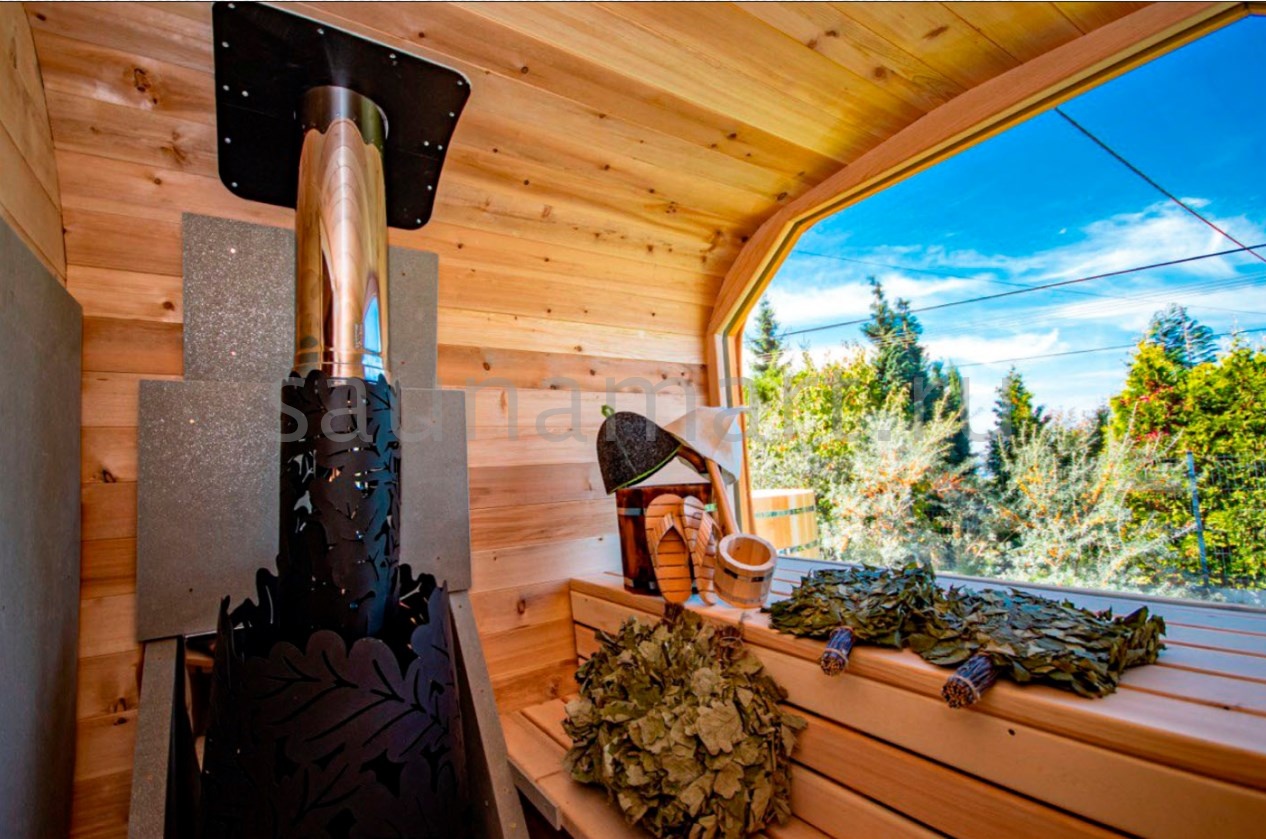 Несмотря на свои небольшие габариты, печь эффективно прогревает помещение и нагревает камни до рабочей температуры 250-300 градусов Цельсия.