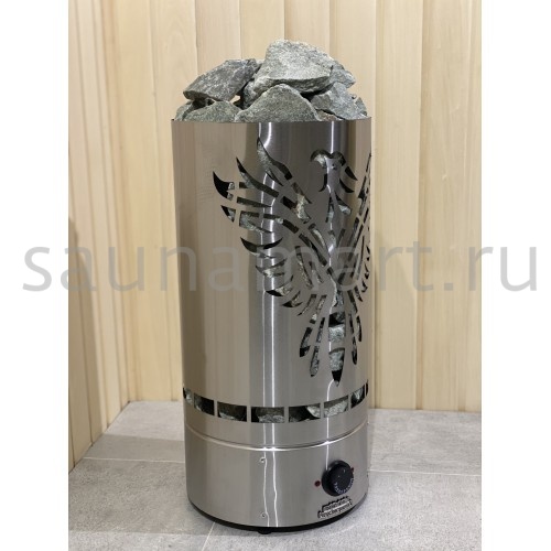 - мощность 6 кВт - работает от 220 или 380 вольт - объем бани 6 - 10 м3 - регулировка температуры воздуха в парилке от 40-120 градусов (встроенный пульт) - 3 ТЭНа из нержавеющей стали - масса вмещаемых камней (рекомендованная) 50- 60 кг (камень Жадеит фракция 5-10 см) Материал изготовления ТЭНов (нагревательных элементов) - нержавеющая сталь. ПАРОВАЯ ПУШКА (пароиспаритель) и КАМЕНЬ ЖАДЕИТ приобретается отдельно! Корпус из нержавеющей стали. Листовой металл. Регулируемые опоры до 20 мм. Внутри электропечи размещен термостат, с рукояткой для управления температуры в сауне (температурный датчик выносится и подвешивается в парильне, регулирует именно температуру в сауне, а не температуру в каменке, что исключает раннее отключение нагрева при не достижении нужного температурного режима в парилке). Цилиндрическая конструкция с высокой загрузкой камня (дает возможность согреваться от камня, получая мягкое тепло), НАДЕЖНАЯ (хорошая циркуляция воздуха между тэнами и высокая теплоотдача каменки) и при желании, можно подливать воду (в разумных пределах) на разогретые камни! Гарантия от производителя - 12 месяцев. Производство: Россия, г. Челябинск Размеры: 31 х 31 х 65 см Вес: 15 кг