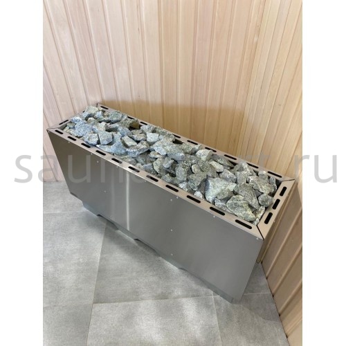 - Конструкция корпуса из двойной стенки с высокой загрузкой камня, что позволяет согреваться от камня, получая мягкое тепло.