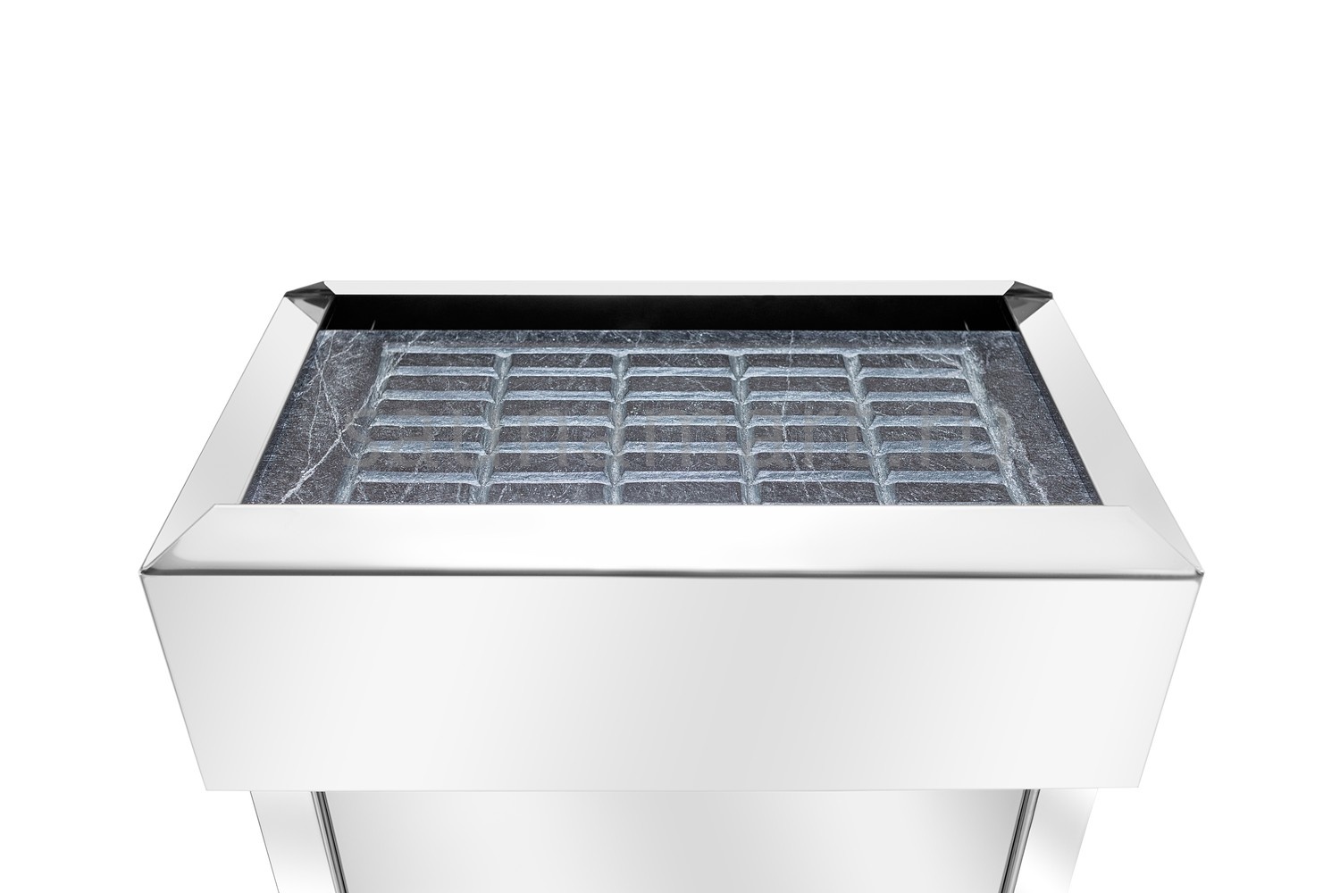 - Нагревательная плита: Электрокаменка оздоровительной серии в комплекте с горизонтальной нагревательной плитой из природного камня Талькохлорита высотой 6 см и массой 15 кг с распилами специальной формы, позволяет использовать её в качестве испарителя. На такой плите вода испаряется постепенно и создает благоприятный и комфортный климат в сауне.