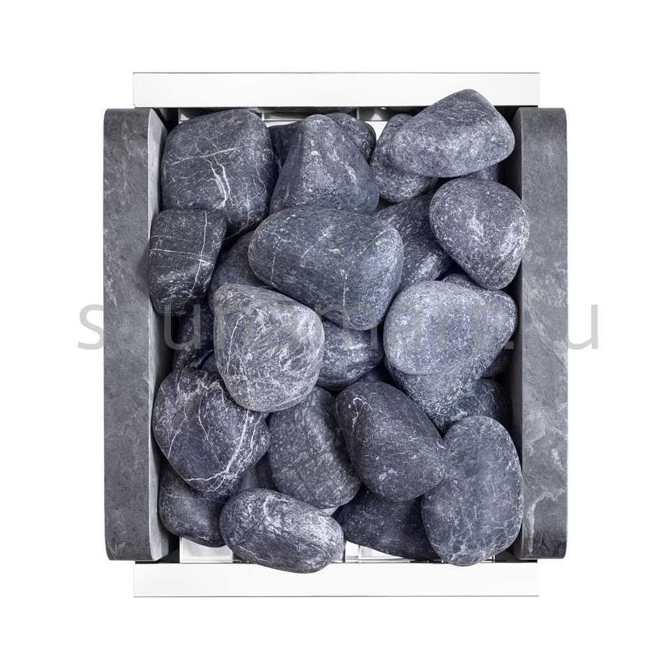 Простые формы каменки выгодно подчеркнуты 4 вертикальными камнями талькохлорита, которыми облицованы передняя и задняя стенки печи. Материал боковых стенок представляет собой высококачественная нержавеющая сталь, защищающая все внутренние элементы прибора от влаги, температурных перепадов и коррозии.