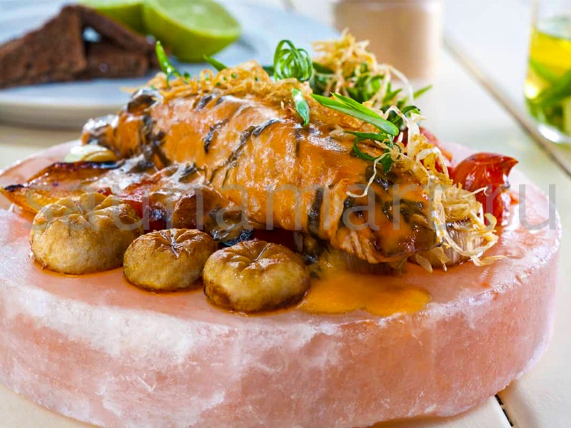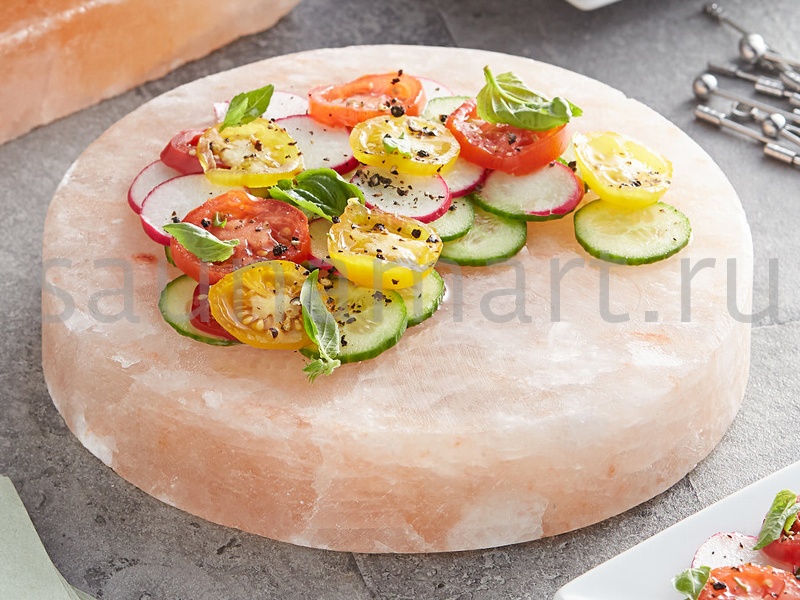 Соляная плитка из натуральной Гималайской соли предназначена для приготовления различных продуктов.