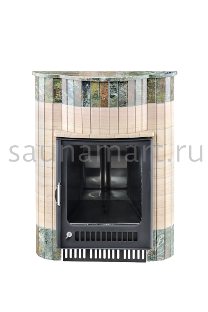 Для печи «Оптима» серии ПФ производитель V?hringer выпускает порталы из натурального мрамора, змеевика и жадеита. Облицовочные материалы поступают на завод в слэбах, заготовки разрезают на пластины, которые затем навешивают на печь.