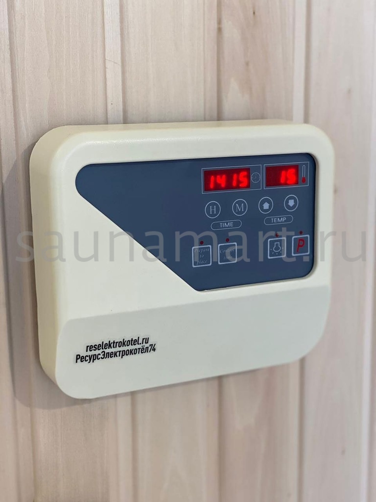 Пульт управления элeктрoкaмeнкой (электропечью для сауны) ПУЭКМ "Ресурс" цифровой программируемый 18 кВт. Пульт устанавливается в предбаннике, а датчик заводится в парилку.