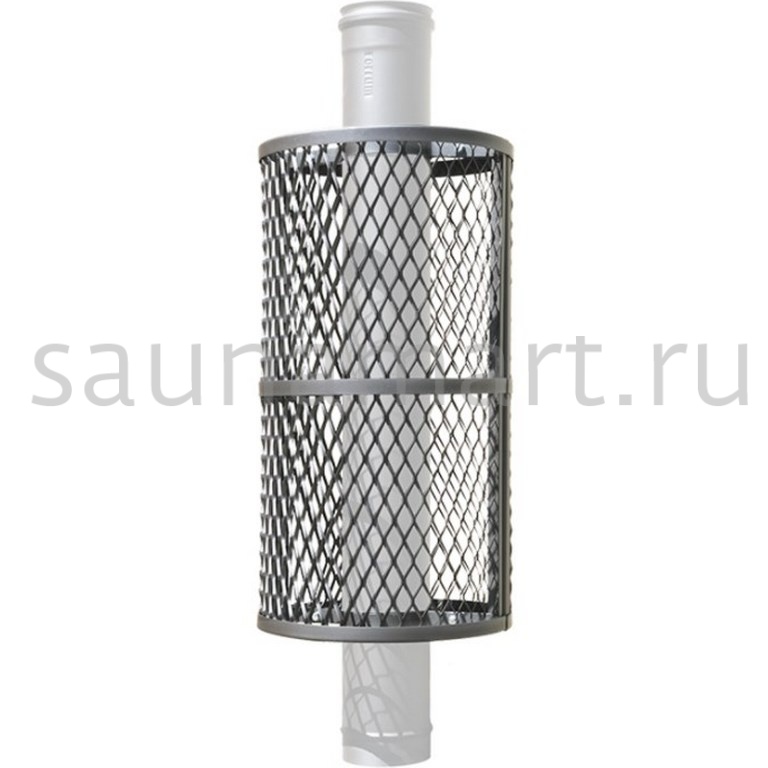 Сетка-каменка эффективно защищает от теплового излучения, уменьшая открытую поверхность трубы и перенаправляя тепло на прогрев камней. Конструкция специально разработана для монтажа на трубы диаметром 115 мм, причем установка возможна даже на уже работающие печи, что делает решение универсальным и практичным.