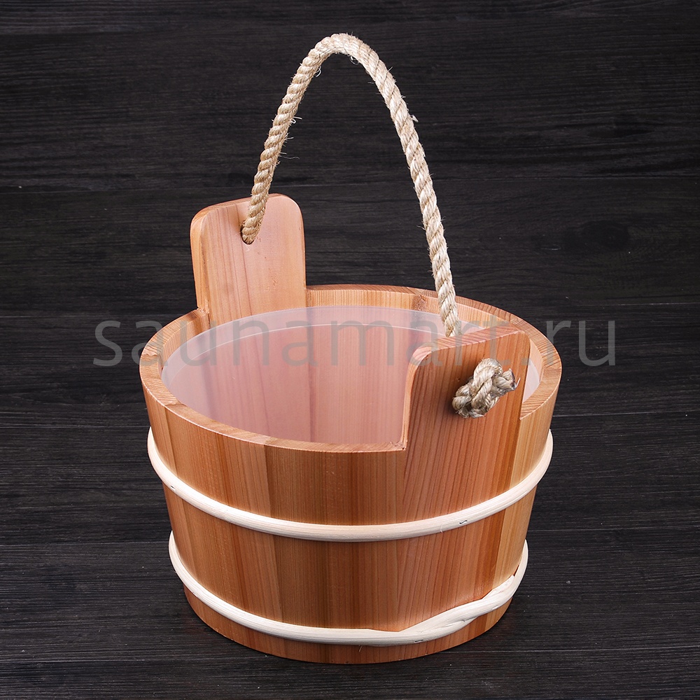 Шайка 4л кедр/ручка канат с пластиковой вставкой Kurase