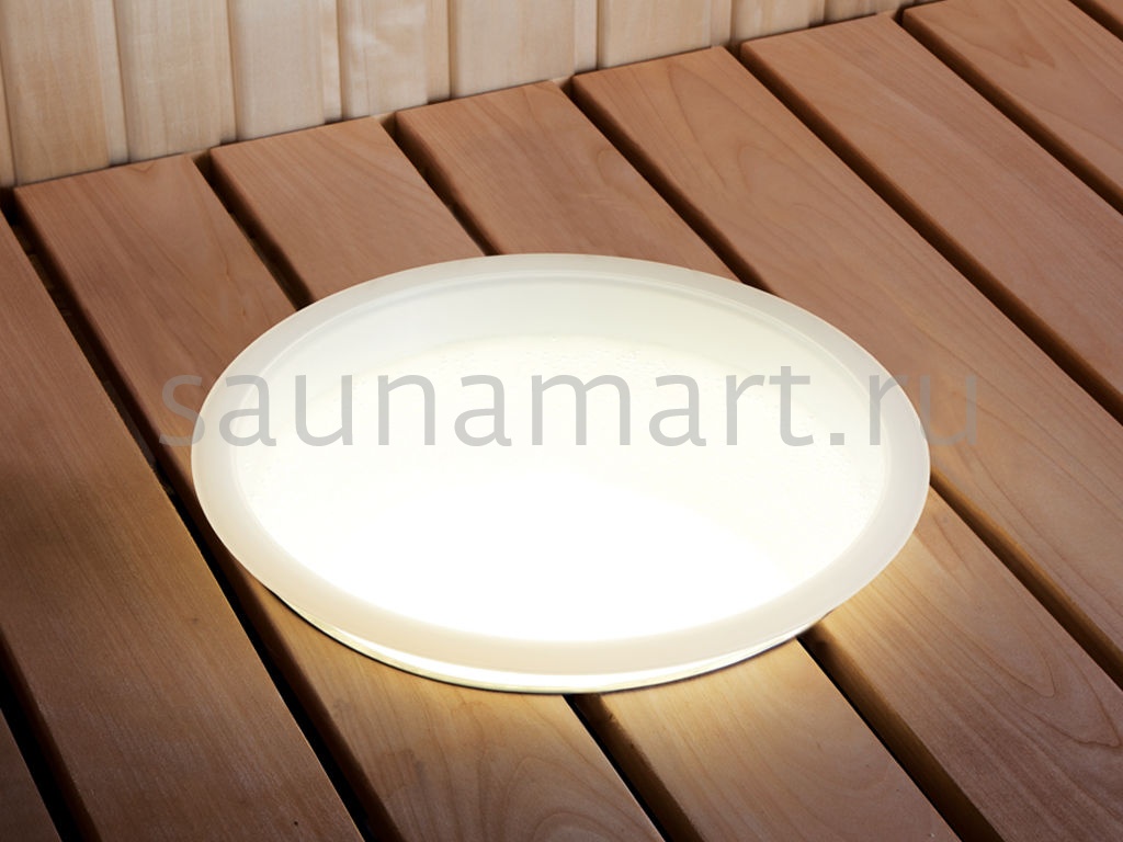 Шайка с подсветкой от Harvia - это современный и стильный способ доставки воды и света в парилку сауны. Основание шайки можен быть установлено на поверхность полка, или же шайка может быть встроена в полок. Светодиодный светильник в основании равномерно освещает шайку, а шайка также освещает окрестности - она изготовлена из оптического пластика с оптимальным рассеянием света.