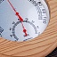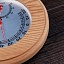 Термогигрометр имеет оригинальную круглую форму. В широкой рамке из древесины кедра  находится циферблат, который сообщит о температуре воздуха. Данный прибор прекрасно подойдёт для использования в парной. Максимально допустимая для измерения температура составляет 120 градусов Цельсия. Этого максимума достаточно для комфортных банных процедур. Нагнетание в парном помещении большей температуры нежелательно, так как может быть опасным для здоровья. Благодаря универсальному дизайну термометр станет прекрасным дополнением любого интерьера.