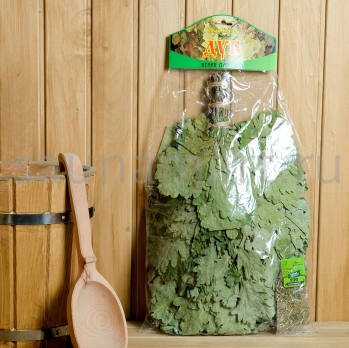 Листья и веточки дуба богаты эфирными маслами и дубильными веществами. Дубовый веник эффектно выглядит, ароматен, а благодаря особой форме резных и широких листьев он способен отлично впитывать пар.